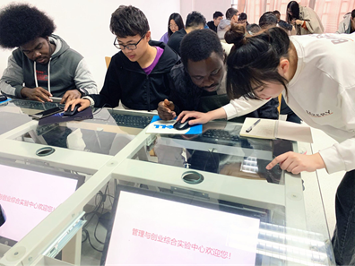 The Chinese and foreign bilingual innovation and entrepreneurship simulation is an exercise that brings students together by forming groups where they are allowed to discuss the best and innovative managerial practices that would increase the profits of enterprises or companies they are asked to handle. The groups that are made of students are made to understand the business management approach through entrepreneurial design, simulated operation and other ways. The training goes to improve students' risk control ability, problem-solving ability, contingency ability, and promote the combination of theoretical knowledge and practical ability. This training adopts the virtual simulation in the form of "entrepreneurial star", where there are four competitive quarters of enterprise operation simulation. The results of the four quarters are then ranked according to the comprehensive scoring sequence calculated by the software's own scoring system. The training The School of Management in collaboration with Entrepreneurial Simulation Club held the first Chinese foreign bilingual innovation and entrepreneurship simulation training on the 14th day of November 2020. The first training session amongst many was held at the Entrepreneurship Simulation Laboratory at the Sanjiang building, room 1208.
