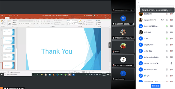 An online welcome ceremony was held for new and continuing Postgraduate (PG) students of School of Management on 10th April, 2021 between the hours of 18:30 and 19:50. Over one hundred and fifty students from across the world attended this online meeting. The PG students’ president Mr. Francis gave the modality of the meeting and spelled out the agenda. He welcomed all the audience to the meeting. He explained that, the meeting would have been face to face but Covid-19 prevention protocols needed to be followed so it wasn’t possible. The PG students’ president also gave presentation on the School of Management scholarship application procedure. He hinted on selection criteria which is based on who is qualified, categories of applicants, application materials needed and submission procedures, and assessment procedures.