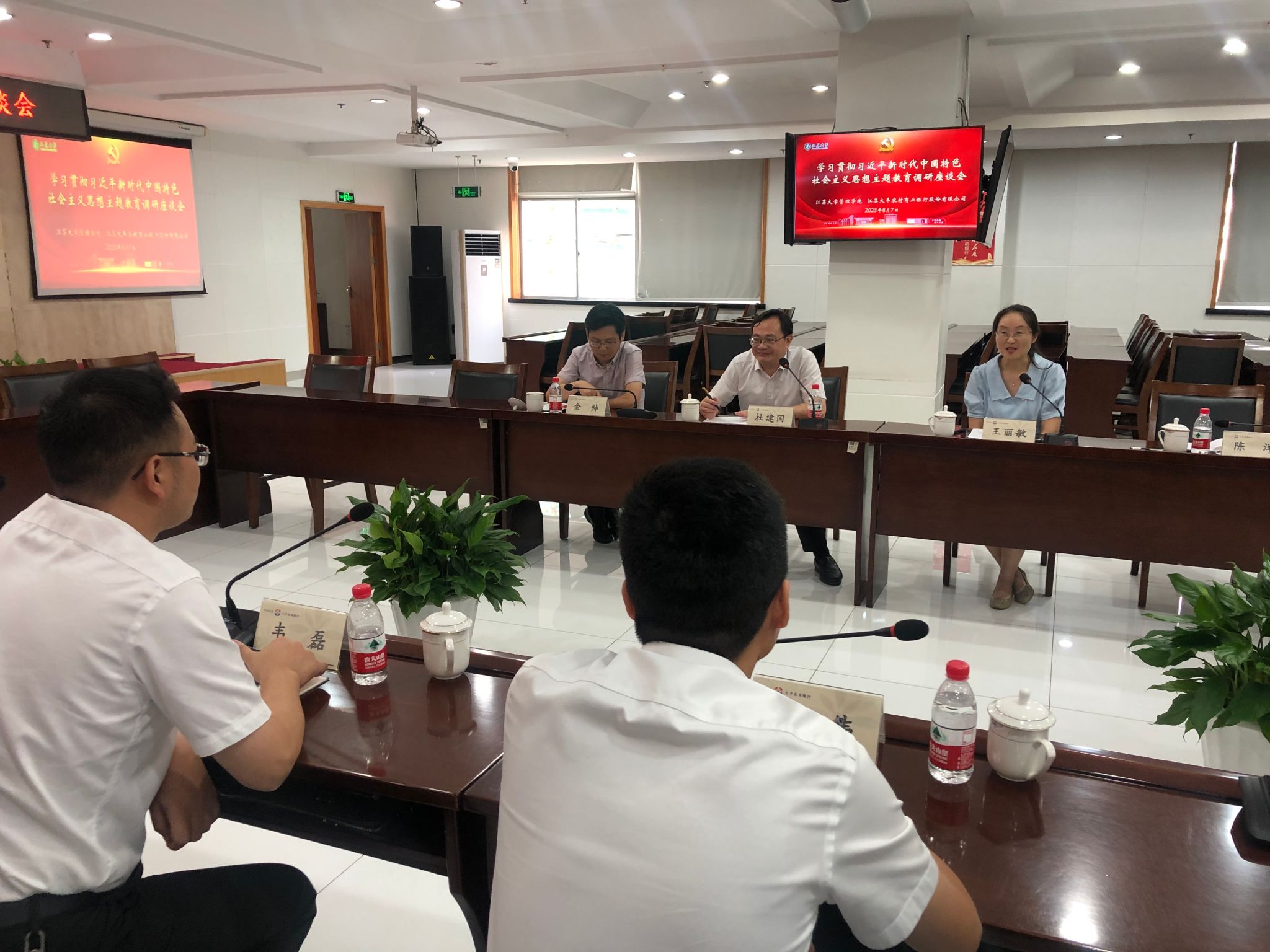近日,yl7703永利集团党委书记王丽敏、院长杜建国教授,副院长金帅教授、MBA中心副主任陈洋一行4人前往江苏大丰农村商业银行,开展学习贯彻习近平新时代中国特色社会主义思想主题教育调研活动。此次活动通过深入用人单位围绕研究生人才培养及校企合作等主题展开调研。调研团队首先与来自大丰农商行的yl7703永利集团MBA校友进行了座谈,随后与大丰农商行董事长张洪国先生就校企合作进行了交流。