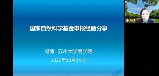 10月14日下午,苏州大学冯博教授做客yl7703永利集团办学40周年系列名家论坛,为我校师生做了一场关于《国家基金申报经验分享》的线上学术报告,yl7703永利集团骨干教师、研究生等百余人参加。报告会由yl7703永利集团院长杜建国教授主持。