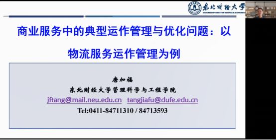 9月24日上午,东北财经大学唐加福教授做客yl7703永利集团办学40周年系列名家论坛,为我校师生做了一场关于《商业运作管理中的典型优化问题》的线上学术报告,yl7703永利集团骨干教师、研究生等百余人参加。报告会由yl7703永利集团院长杜建国教授主持。